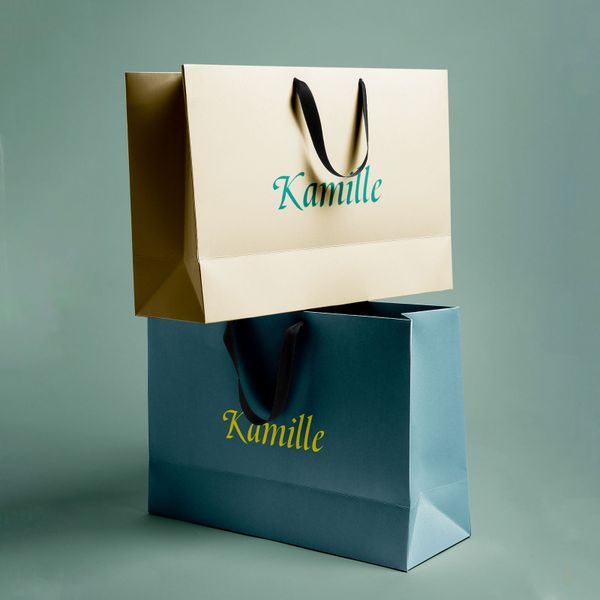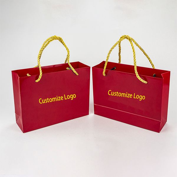Wholesale Custom Brand logo Printed Luxury Gift Paper Bag Boutique Retail Clothing Jerellery Shopping Bag with Ribbon Handle$0.3