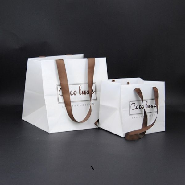 Luxury Ribbon Handle Boutique Shopping Paper Bag Packaging Customized Printed Gift Paper Bags with logo$0.5