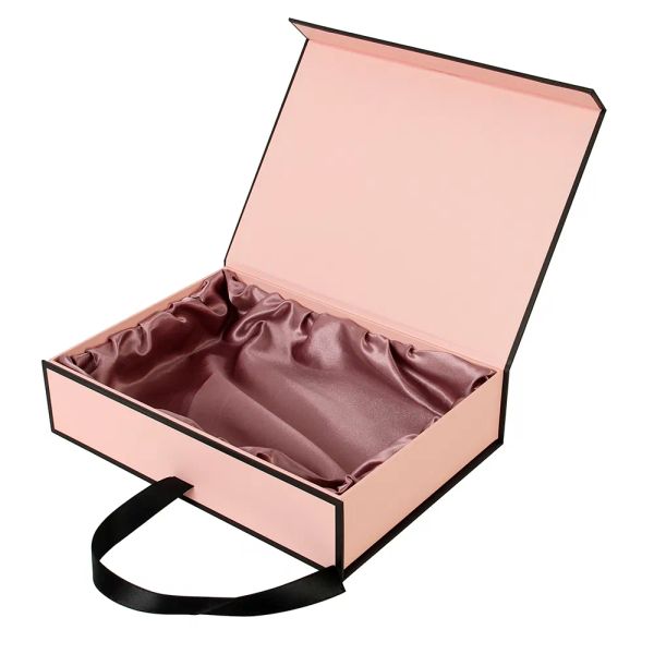 Custom Satin Lined Packaging Paper Gift Box for Hair Extensions with Ribbon Closure$1.65