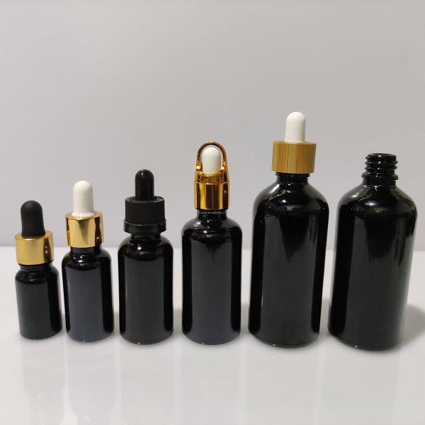 Thick Bottom 5g Concentrate Glass Jar Round Gloss Black Glass Cream Jars with CR Plastic Lids for Cosmetic$0.12