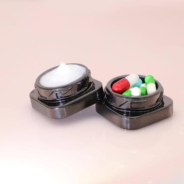 3g/5g Child Resistant Packaging Rosin Jar Gloss Black Silver Interior Concentrate Glass Cream Jar for Cream$0.19