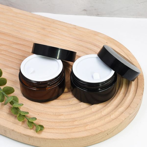 Amber Glass Skincare 50g Cosmetic Cream Glass Jar with Aluminum Lid, Cosmetic Bottle Glass$0.33