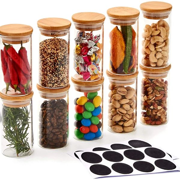 Glass Jar, Food Jar, Glass Food Storage Containers Glass Storage Jar with Airtight Bamboo Lids Kitchen Glass Canisters for Coffee, Flour, Sugar, Candy, Cookie$0.23