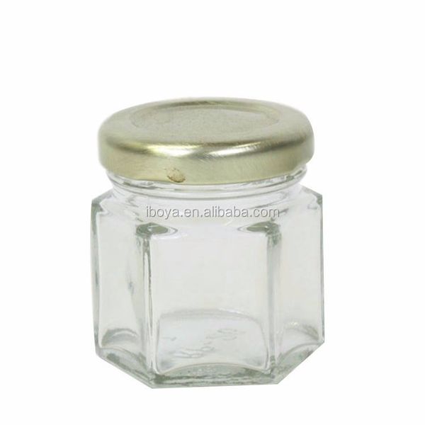 Mini Hexagon Glass Jar 45ml 60ml 85ml 100ml with Tin Cap and Metal Lid New Design for Honey Chutney$0.09