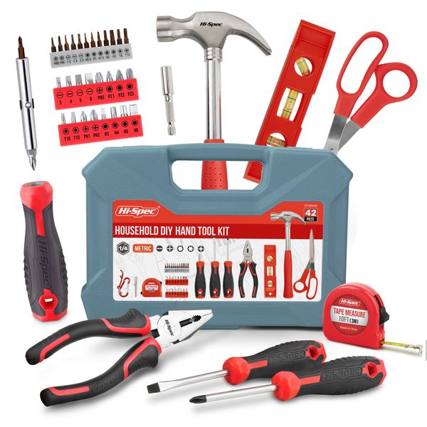 42pc DIY Home & Office Hand Tool Kit Basic Set for Household Repairs in a Portable Hard Case Tool Box-OEM Customizable$4.64