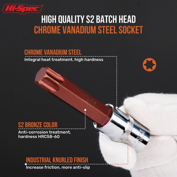 8pc 1/2'' Drive Long Torx Bit Socket Set T20-T70 Carbon Steel Hand Power Tool with Hard Case OEM Customizable$5.5