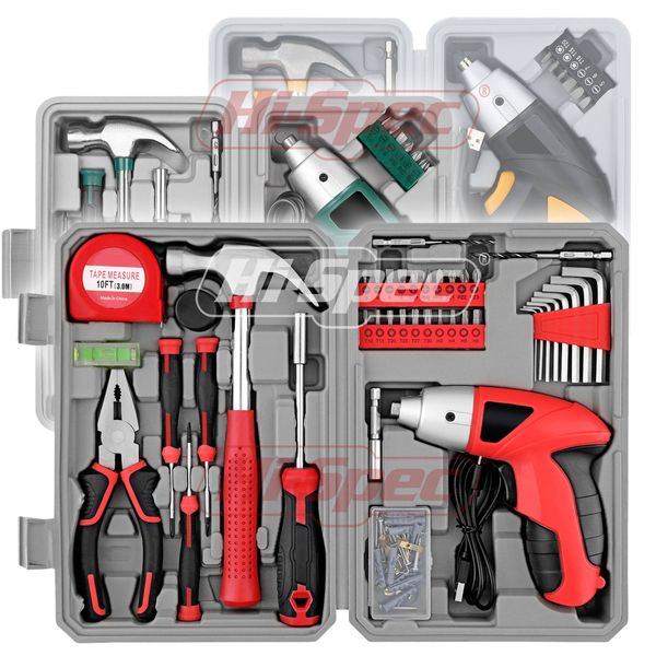 Hi-Spec 8V Lithium Electric Screwdriver Drill Set 109-Piece Drawers Three-Layer Toolbox Electrical Power Tool Set Hard Case$30.81