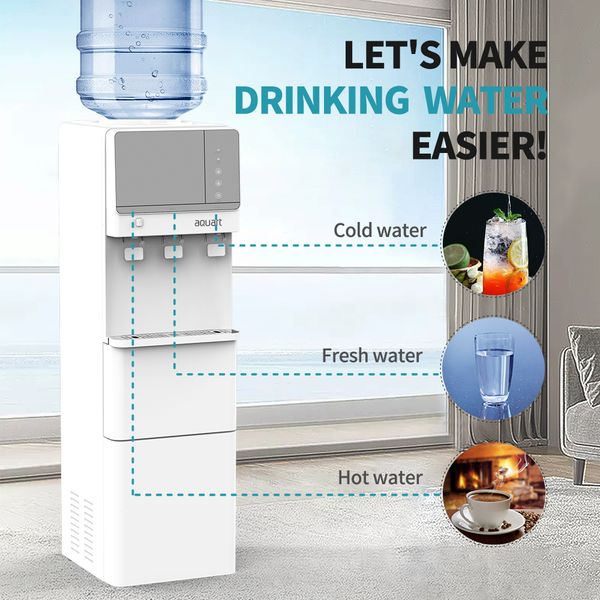 BY609 Aquart Bottom Load Water Dispenser Safety Lock Holds Electric Stand Plastic Hot Cold Tri-temp Child 500W English 585 220$65