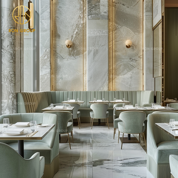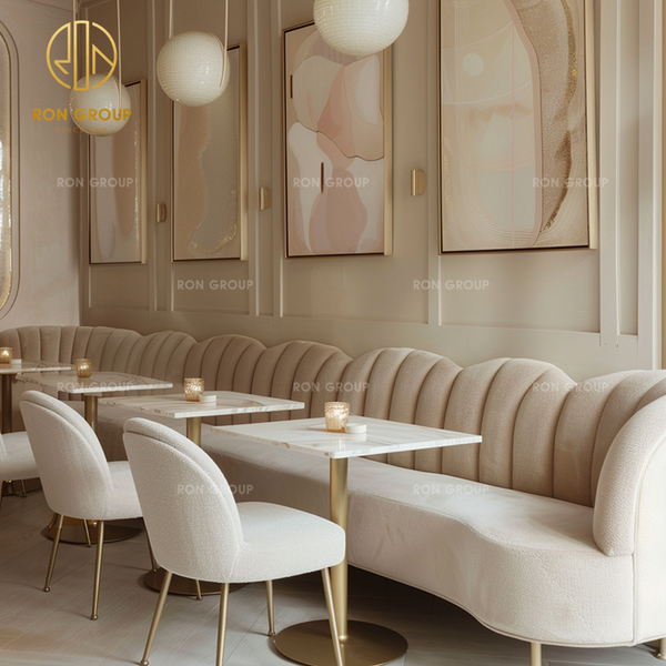 Luxury Premium square Sintered Stone Curved Fabric Restaurant Sofa Furniture Table and Chair Set for Commercial Cafe Shop$65