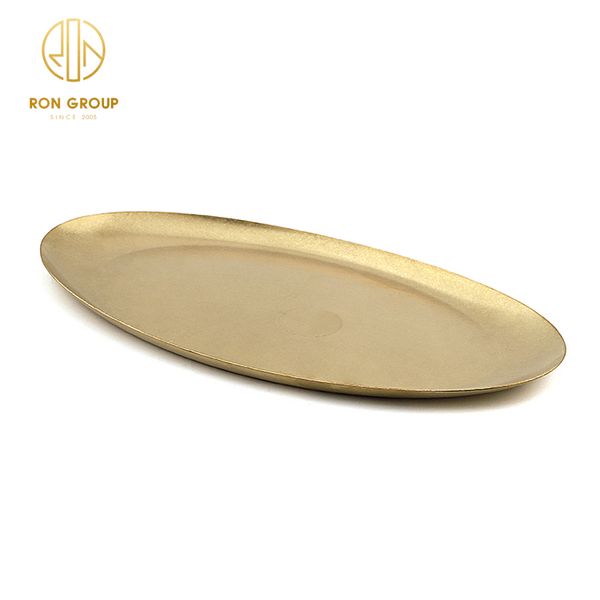 Classical Eco-friendly Melamine Gold Oval Stainless Steel Dishware Tableware Dish Plate for Home Hotel Restaurant Dinner Cutlery$0.9