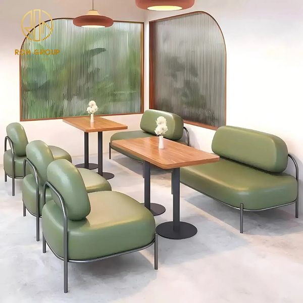 Premium Modern Green square Wood Leather Cafeteria Coffee Shop Restaurant Furniture Bench Set Booth Seating Table and Booth$35.9
