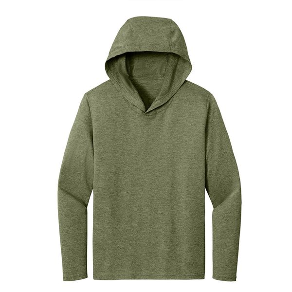 Custom Printing Logo Heather Blue Long Sleeve Casual Active Pullover Curved Bottom Men Lightweight Polyester Gym Workout Hoodie$9.9