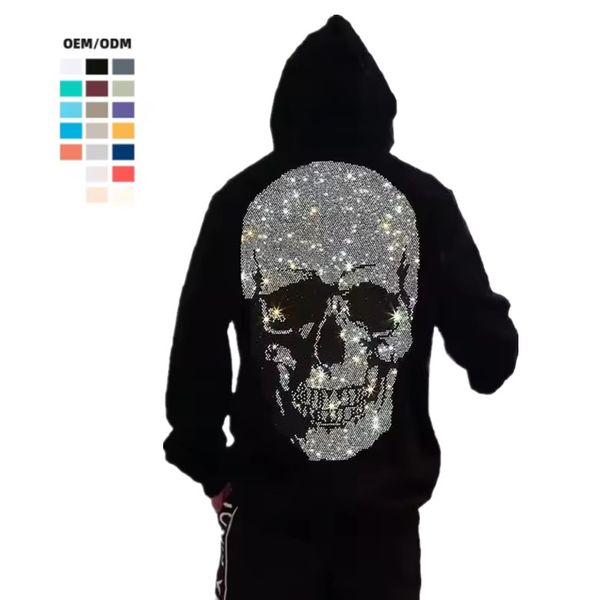 OEM Rhinestone Skeleton Full Face Zip Hoodie Workout Sweatshirts Men's Plus Size Custom Full Zip up Hoodie Rhinestone$8