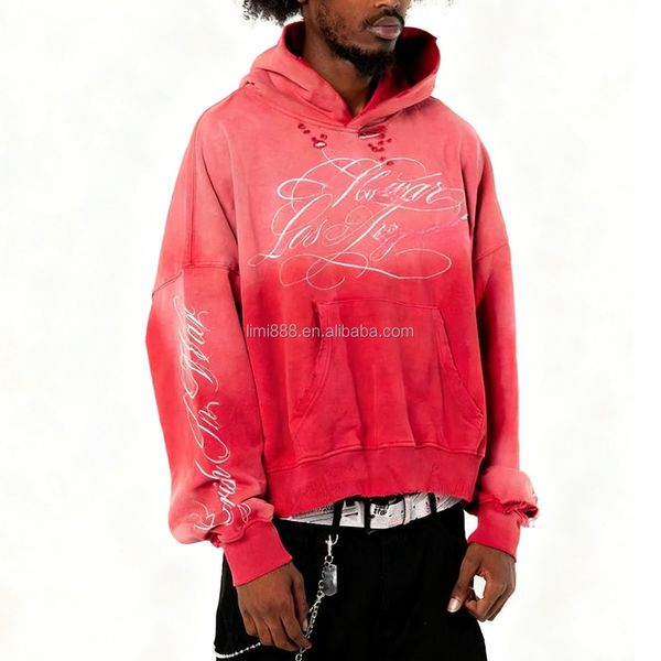 OEM Manufacturer Custom Rhinestone Graphic Print Boxy Fit Hoodie Street Vintage Washed Faded Distressed Oversized Men's Hoodie$10.8