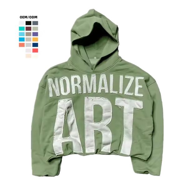 French Terry Men's Women's Unisex Cropped Raw Hem Custom Embroidery logo Hoodie No String$8