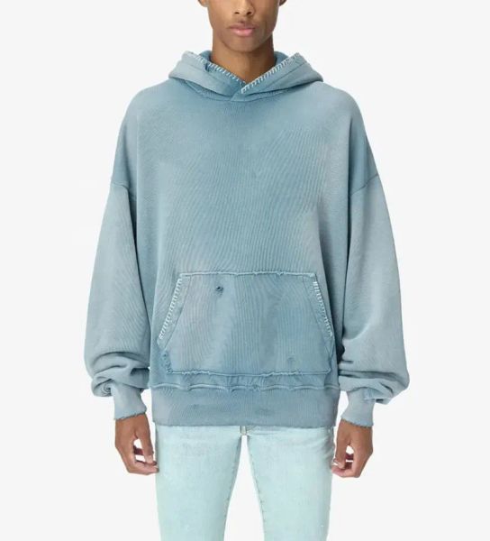 Customs 100% French Terry Cotton Heavyweight Acid Wash Vintage French Terry Distressed Sun Faded Hoodie$9.82