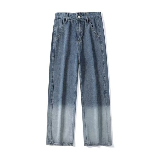 Raw Hem Loose Straight Leg Color Gradient Jeans Port Style Design Casual Pants$9.5