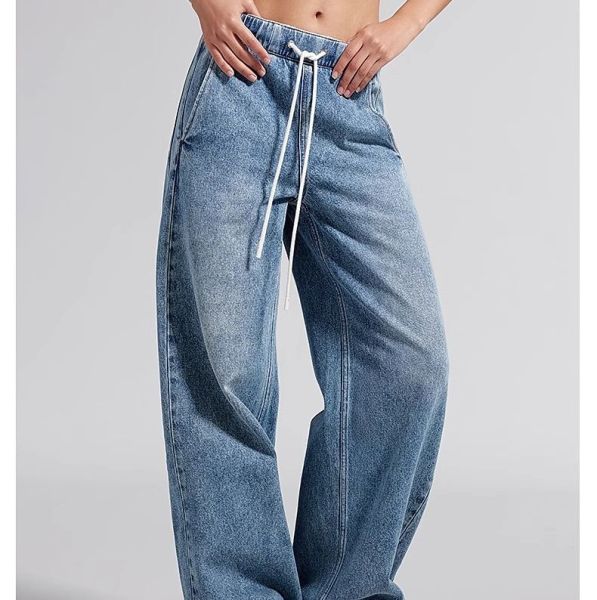 Wholesales Blue Washed jeans pants whisker straight Jeans OEM ODM Pants for Women$10.3