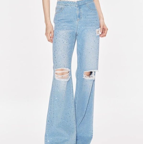 Fashion Light Blue Washed jeans pants whisker straight Jeans OEM ODM Pants for Women$8.5