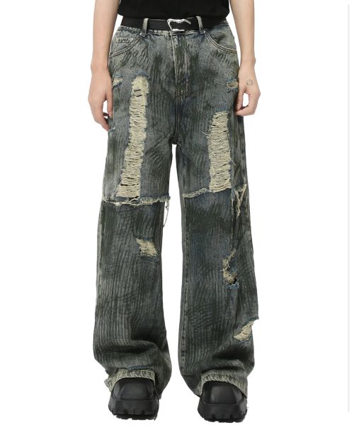 Ripped American Bloke With Ripped Wide Leg Jeans for Old Loose Straight Pants$9.5
