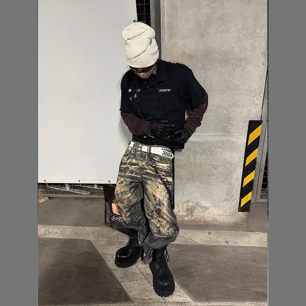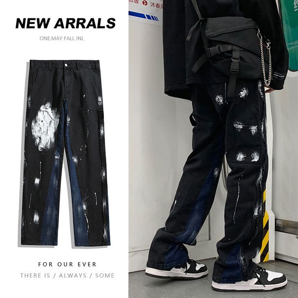 Splash Ink Design Jeans Vintage Patchwork Loose Casual Pants New Factor Mopping Trousers for Men$9.5