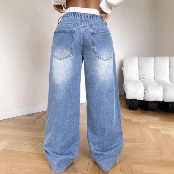 2025 Women's New Fashion Retro High Waist Casual Trousers Low Waist Baggy Jeans in Denim Color Wash for Spring$12.63