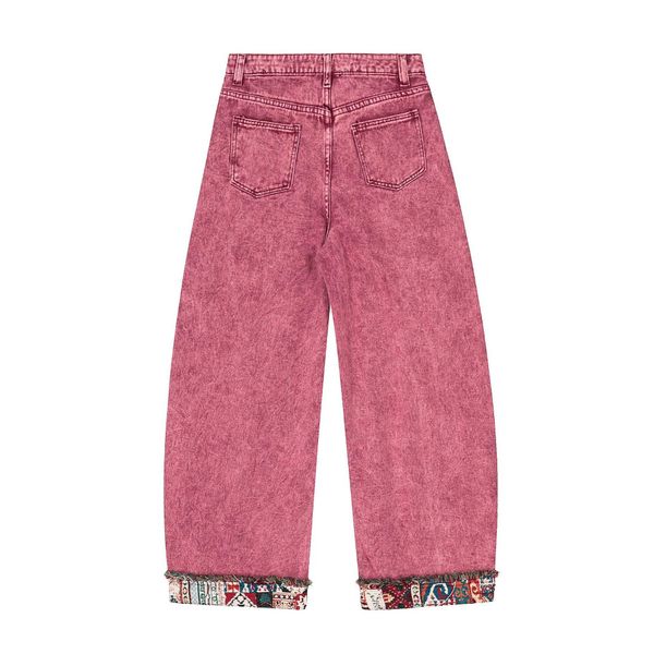 Retro Hot Girl Flip Waist Denim Jeans Women's Solid Color Loose Straight Breathable Pants$10