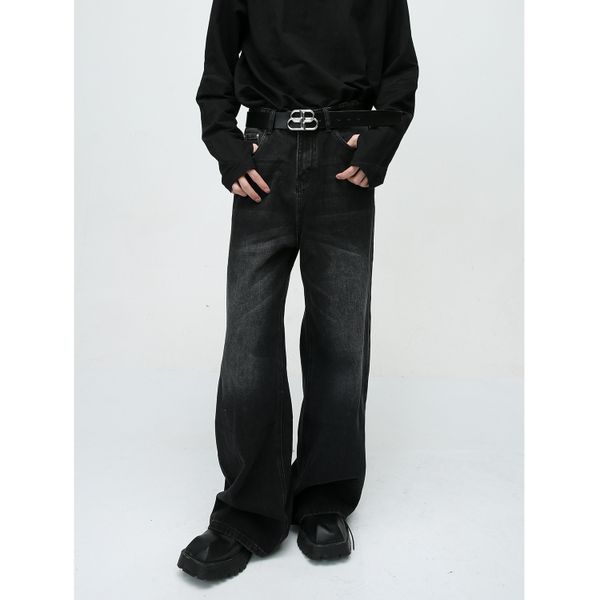 New Trendy Brand Men's Washed Jeans Mid Straight Pants Casual Loose Fit Long Trousers Made Denim$9.17