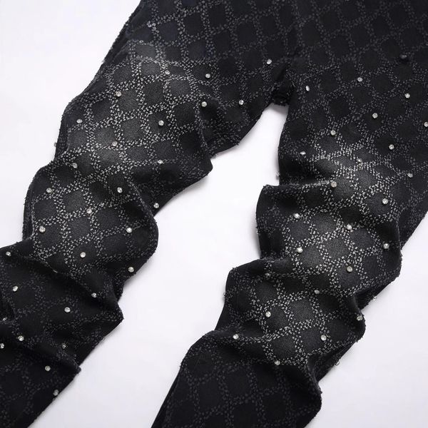 Black High Street Youth Elastic Straight Fit Horn Men's Denim Fleece Jeans$15.83