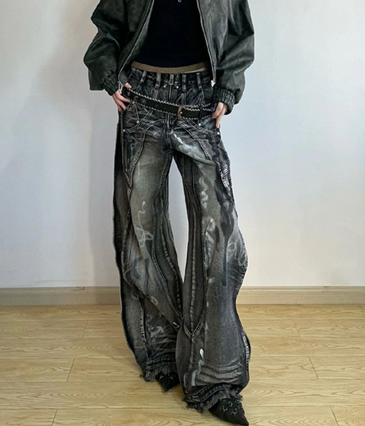 New Chic Fashion Wide-legged Jeans Jeans Vintage Zipper Fly Frayed Hem Female Denim Pants$9.43