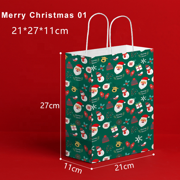 Factory Custom Printing Christmas Kraft Paper Packaging Bag with Handles$0.01