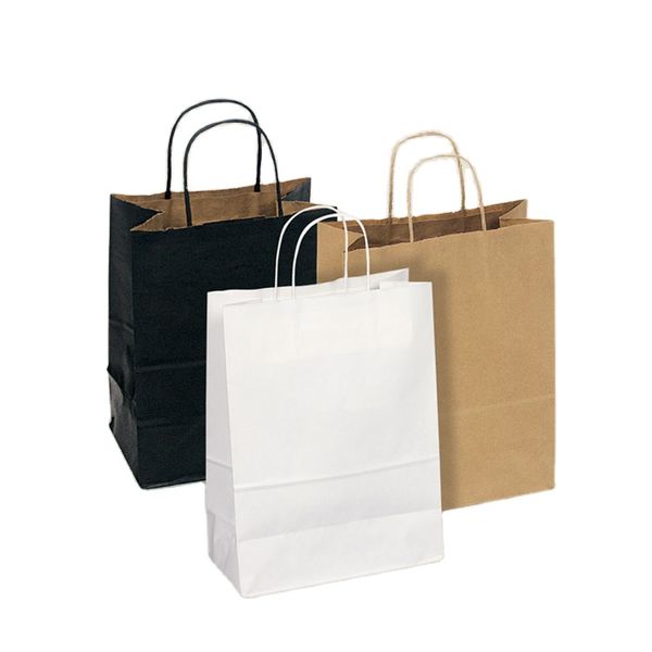 Eco-friendly Kraft Paper Bag White Brown Twisted Handle for Shopping Food Take Away Gift Packaging Craft Paper Bags Photo Frame$0.08