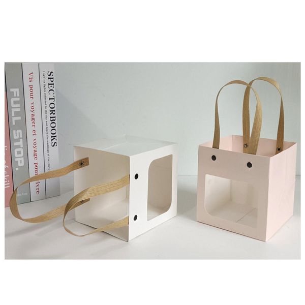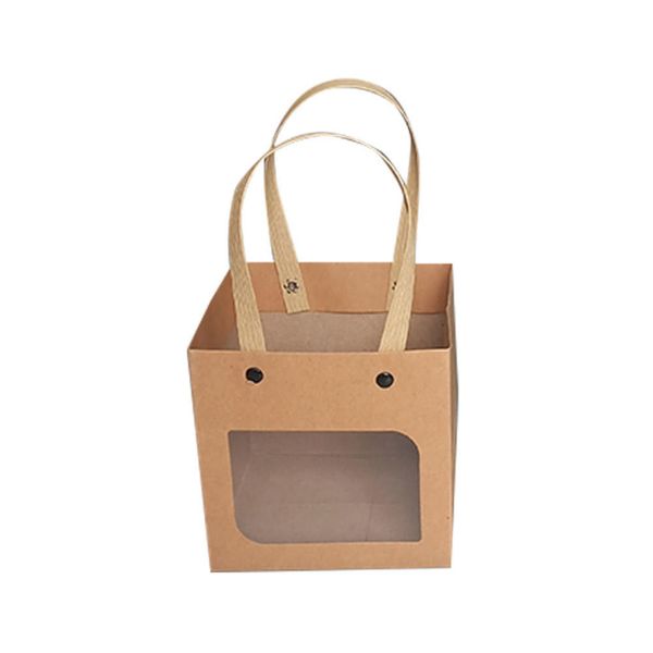 Custom Logo Printed Luxury Kraft Gift Paper Bag Transparent Window Craft Tote for Shopping Souvenirs Wedding Flowers for Candle$0.25
