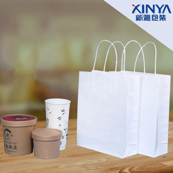XINYA Custom White Kraft Paper Bags Recyclable Offset Printed Premium Craft Paper Bag for Food Packaging Any Size for Promotions$0.08