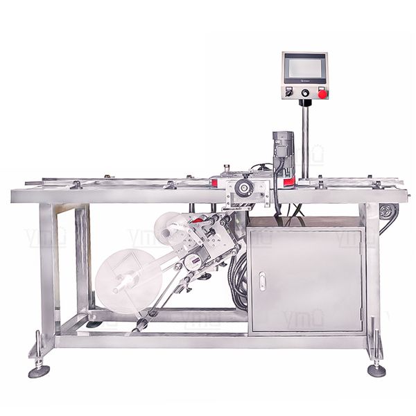 YIMU YM210 Automatic Label Applicator Bag Cap Lids Box Flat Label Machine Top and Bottom Labeling Machine$3000