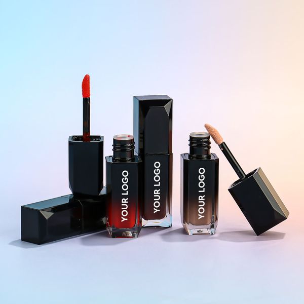 New Luxury Gradient pink Liquid Lipstick Packaging Empty Frosted Black White Lip Gloss Container Tubes With Applicator 8ml$0.34