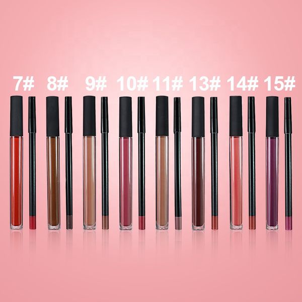OEM High Pigment Liquid Lipstick Vendor Custom logo Lipstick Lip Gloss and Lipliner Set Private Label Lip Gloss Lip Liner Set$0.75