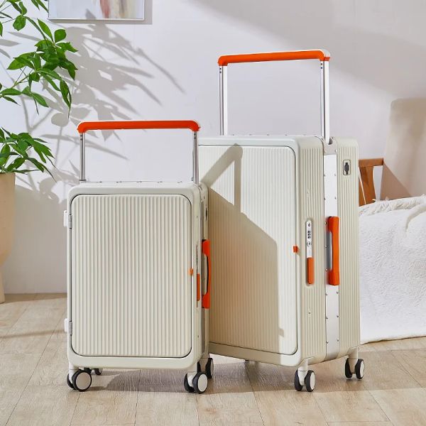 New 20 25 Inch Wide-Handle Carry-On Suitcase Aluminum Frame Trolley Luggage Travel Case Personalized Front-Open Business Luggage$58.99