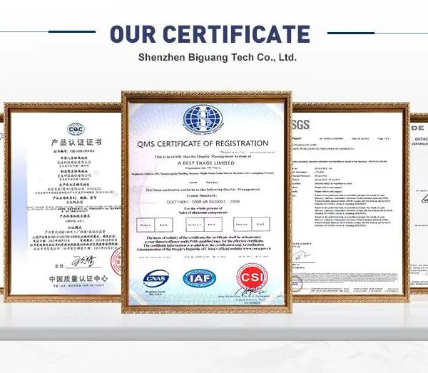 Shenzhen Biguang Tech Co., Ltd. is a professional electronic components distributor and manufacturer based in Shenzhen, China. Founded in 2021, the company operates as a versatile B2B partner, serving as a wholesaler, agent, and service provider with specialized OEM and ODM capabilities. The firm maintains a strong focus on quality management, holding ISO 9001 and ISO 14001 certifications. Shenzhen Biguang Tech offers an extensive inventory of over 4 billion components sourced from nearly 400 manufacturers, including global brands such as ST, TI, Panasonic, NXP, and Samsung. Their comprehensive product portfolio features integrated circuits (ICs), capacitors, inductors, crystals, connectors, and relays, alongside specialized equipment like DC-DC converters, LED drivers, and RF amplifiers. Beyond distribution, the company is involved in the design and development of advanced equipment for communication fields and high-end integrated technology. With a team possessing decades of industry experience, the company provides end-to-end supply chain solutions, screening and monitoring suppliers to reduce costs and risks for international buyers. They emphasize quick delivery and competitive pricing for a global clientele across the consumer electronics, industrial, and telecommunications sectors.
