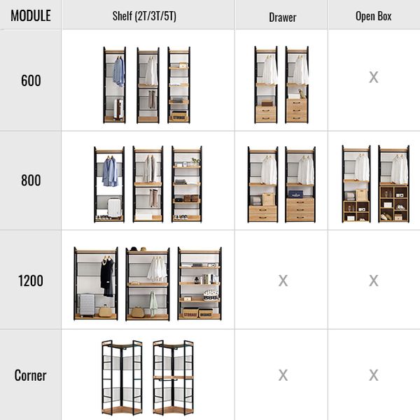 Bedroom Furniture Black Steel Frame Acacia Walnut Wooden Shelf Clothing Wardrobe Design Metal Closet$65