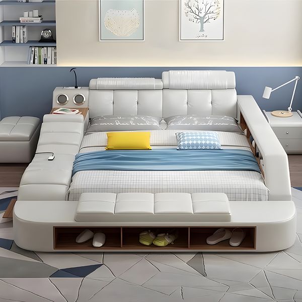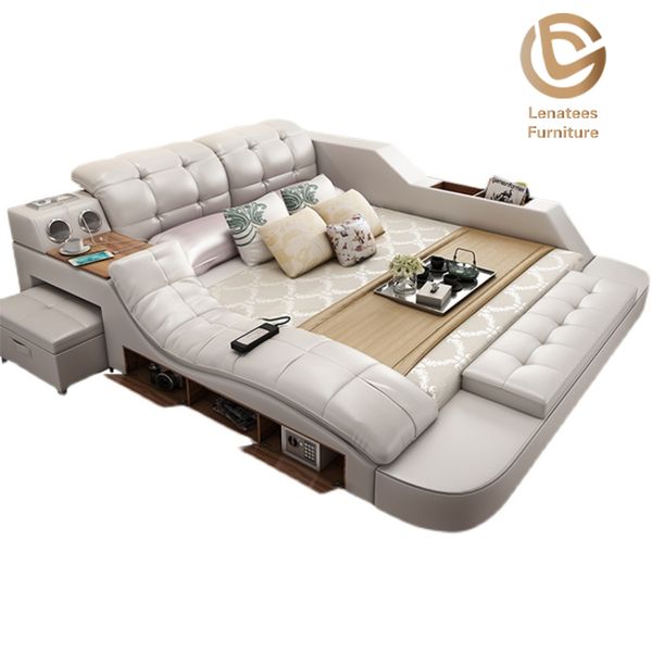 New Design Modern Bedroom Storage Leather Bed Multifunction Massage Tatami Bed Smart Bed With Usb Charge and Speaker$550