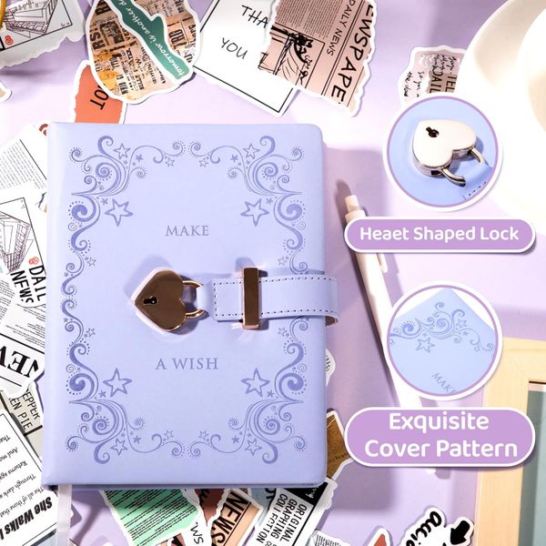 Lock Diary With Key for Girls Moon Kids Journal With Lock for Gifts A5 Secret Journal Notebook for Writing Draw Travel$1.58