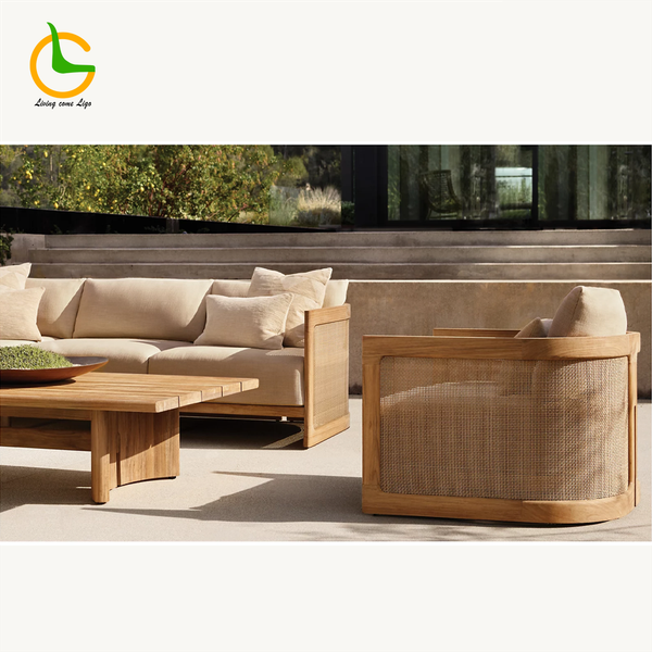 Outdoor Luxury Sofa Set Patio Garden Terrace Natural Teak Wood Outdoor Furniture Minimalist Garden Sets$119
