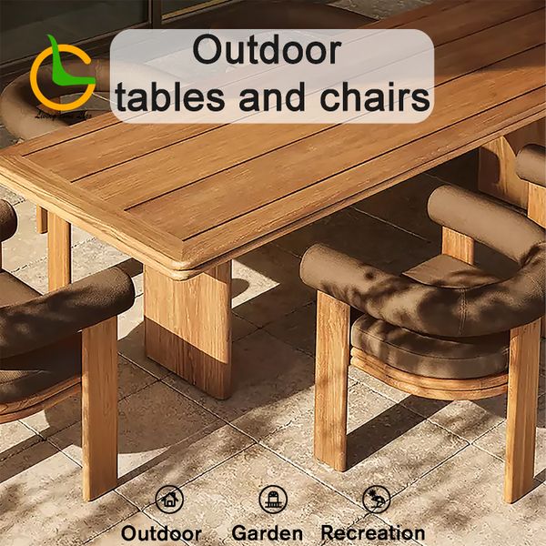 Outdoor Tables for Hotel Garden Teak Table and Chair Resort Outdoor Furniture Set Villa Teak Outdoor Dining Table Set$110