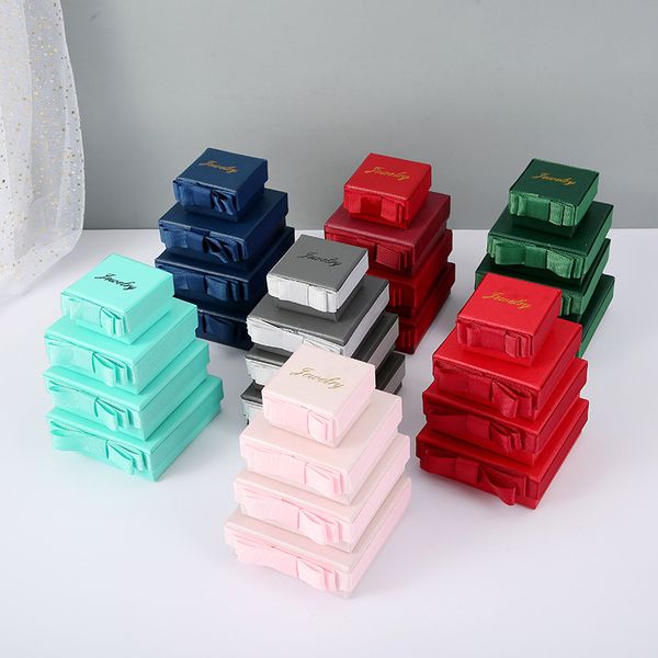 Custom Packaging Velvet Jewelry Box Portable for Necklace Earring Packaging Boxes Custom Logo Luxury Velvet Ring Box$0.25