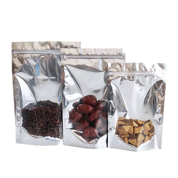 10x15cm Factory Price clear Front Glossy Silver Small Resealable Zip Lock Stand up Food Packaging Pouches Bags$0.02