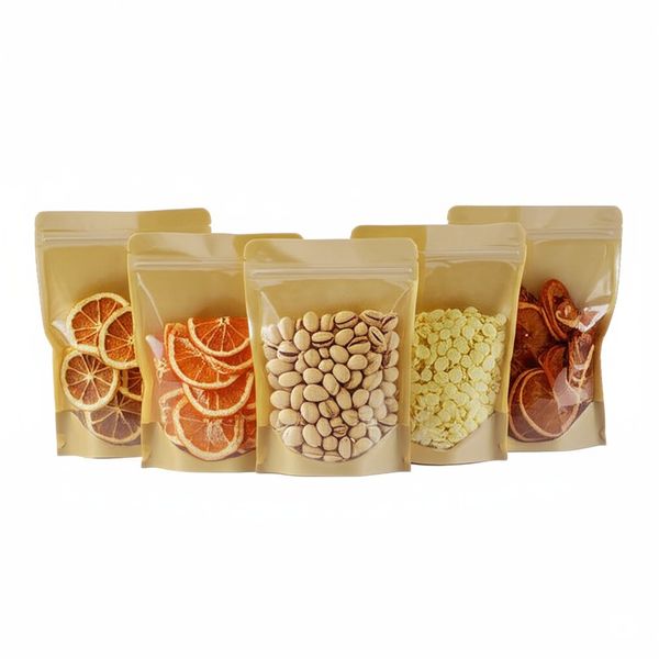 15x22cm Kraft Paper Ziplock Bag with Transparent Front Candy Packaging Pouch$0.04