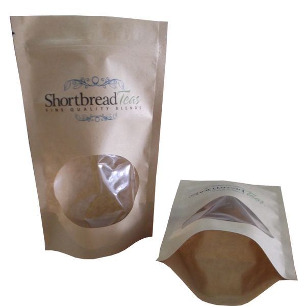 Custom Digital Printed Biodegradable Zip Lock Brown Kraft Paper Stand up Pouch Coffee Tea Packaging Bags with Oval Window$0.04