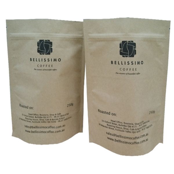 Custom Printed Food Grade Plastic Stand Up coffee bean Pouch Heat Seal biodegradable kraft paper coffee bags with zipper$0.04