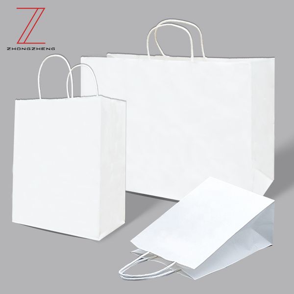 Wholesale White Paper Bags with Handles DIY Reusable Hand-held Paper Bags Customized logo$0.2